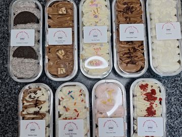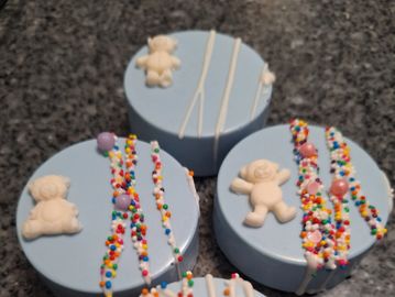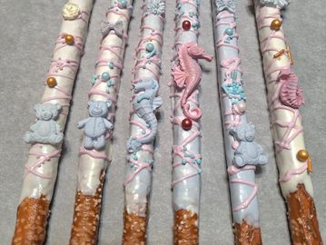 5oz Cookies – Triple Chocolate Chip (rich, gooey, and loaded with chocolate!) – Oatmeal Raisin Cranberry Pecan (warm, cozy, and packed with mix-ins); Mini Cakes (Perfect Single-Serving Desserts!) Flavors: – Cookies & Cream – Chocolate – Chocolate Caramel – Red Velvet – Key Lime – Coconut – Birthday Cake (Funfetti) – Marble – Vanilla; Chocolate Treats – Chocolate Covered Oreos – Chocolate Covered Pretzel Rods; Cake Pops – Chocolate – Vanilla Beautifully packaged, and perfect as a
